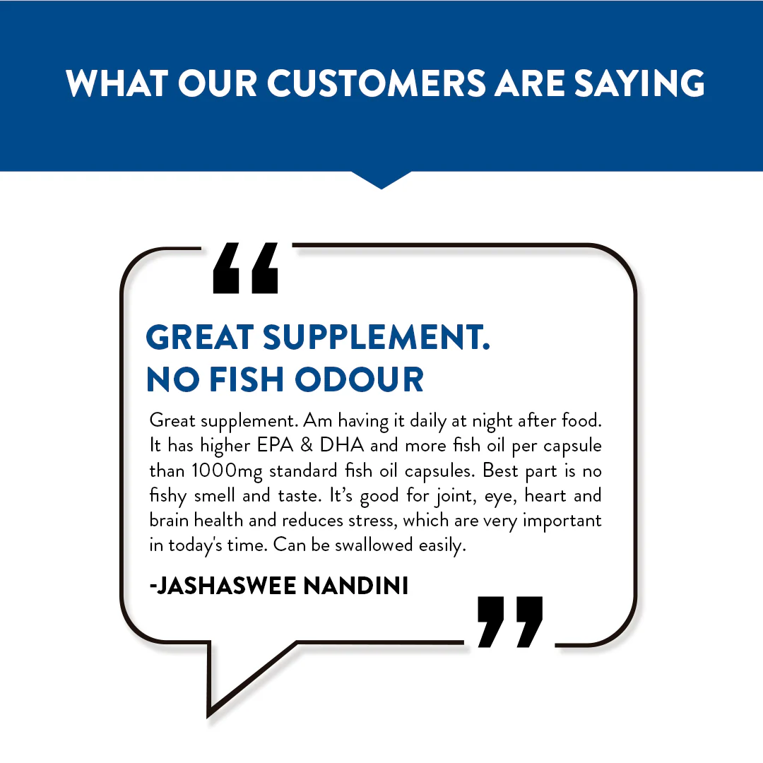 Improve general health and reduce joint pain, with 4 times higher concentration of Omega-3 fatty acids. Each capsule contains 4 times more EPA (720 mg) and DHA (486 mg) than a standard 1,000mg fish oil capsule.